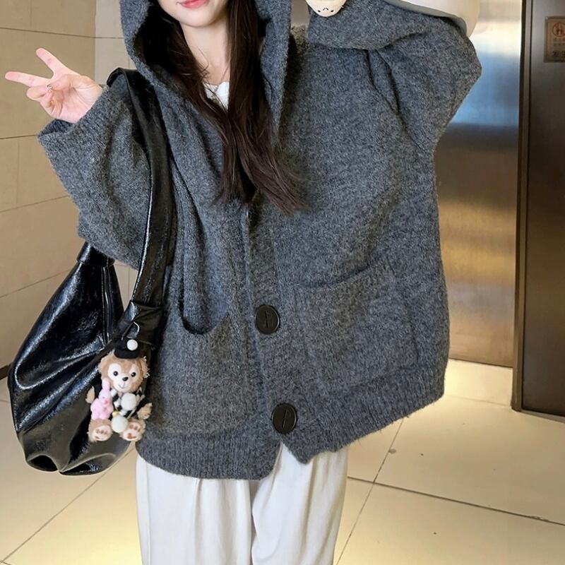 フード付き オーバーサイズ カーディガン 00138