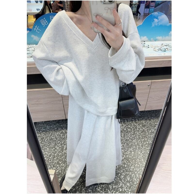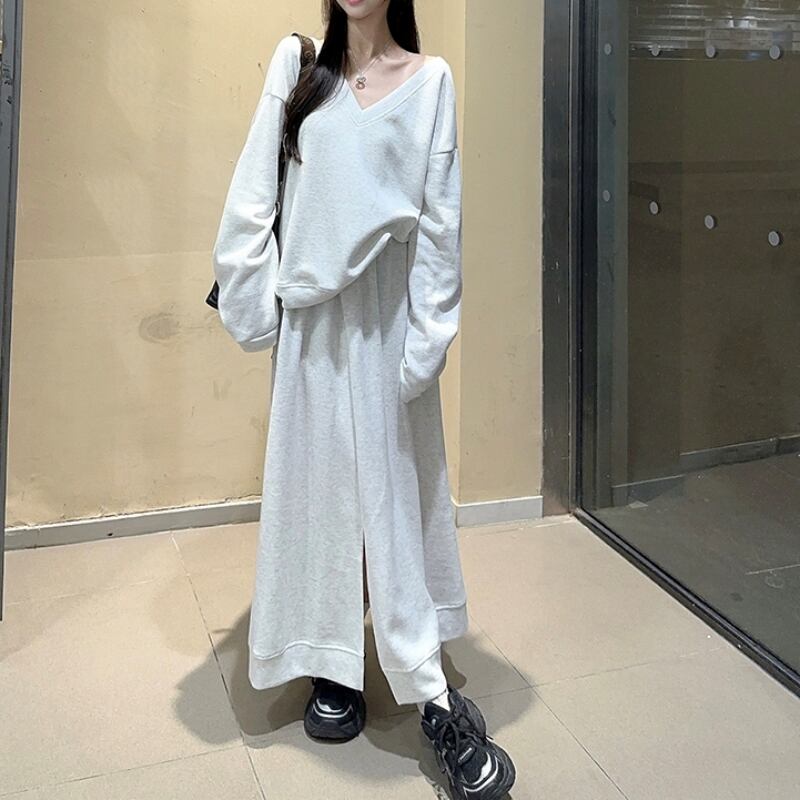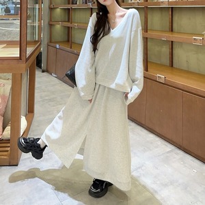 Vネックスウェット&スカートセット 00182