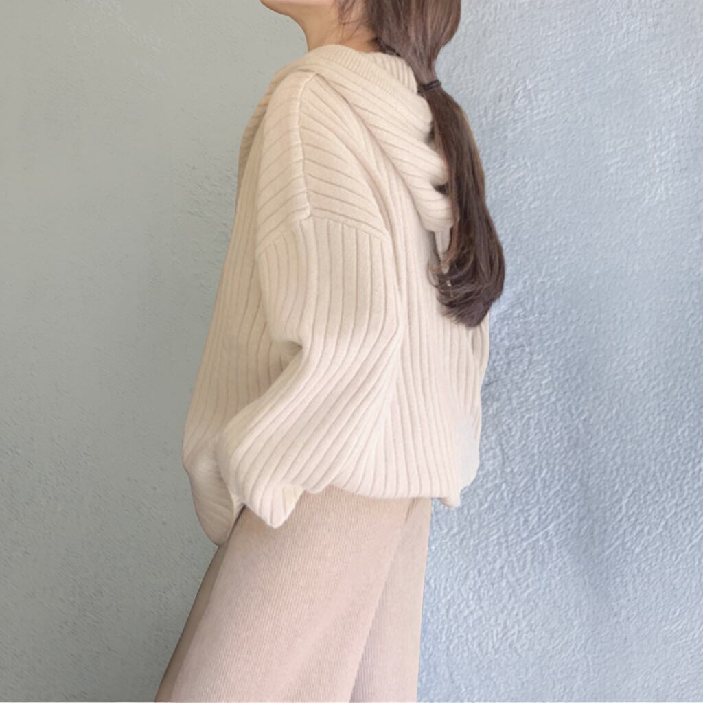 リブニットフーデッドプルオーバー 00024