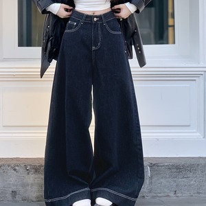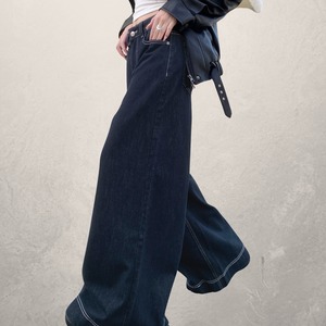 ハイウエスト裾ステッチ入りデニム 00095